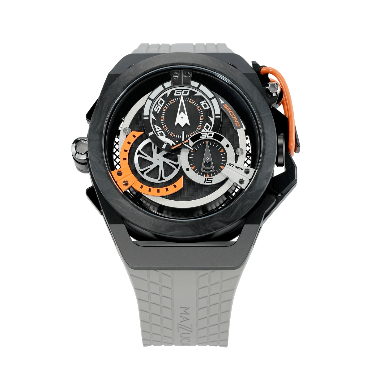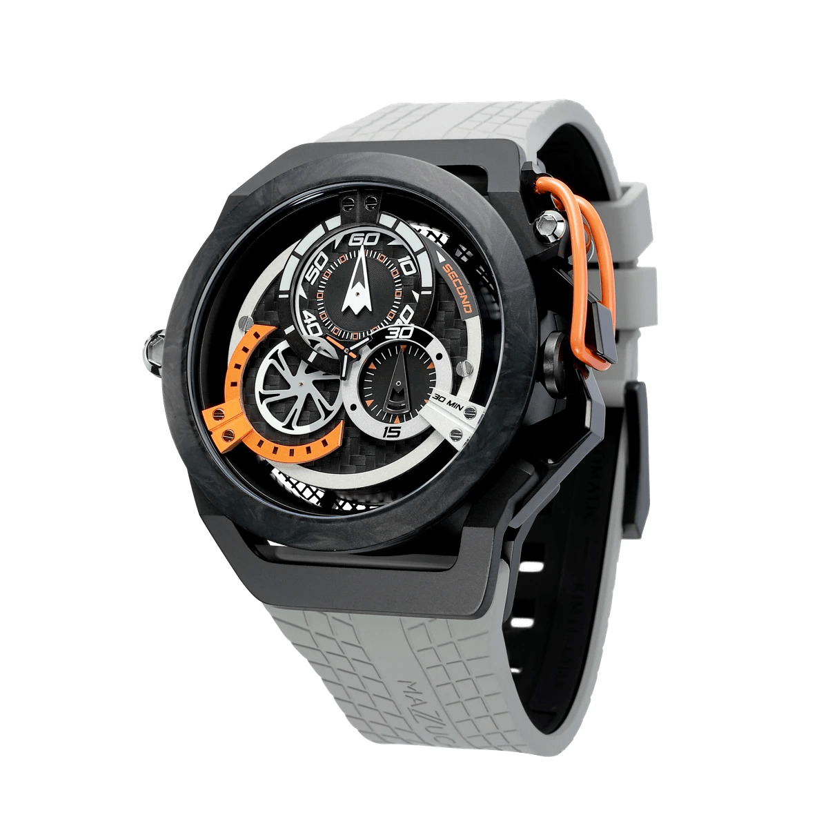 El nuevo R.I.M. Sport Monza es el modelo más extremo y deportivo de la familia Sport. Con un diseño más nuevo y una fibra de carbono construida, representa el reloj de carreras más avanzado y deportivo hasta la fecha. Como todos los demás relojes del R.I.M. familia, es reversible con una esfera dual para funciones de reloj deportivo y cronógrafo.