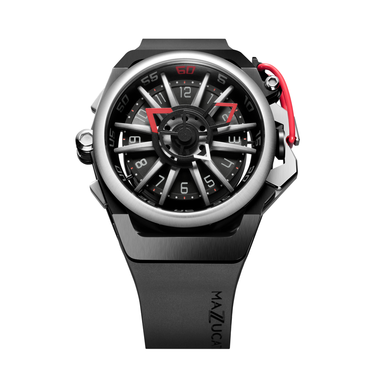 El sistema inverso permite que la caja se invierta completamente en ambas direcciones. Un pestillo de liberación rápida libera la corona de su protección al girar el protector de corona. Dos brazos especiales permiten que el estuche gire libremente y un clic claramente reconocible le indica cuándo el estuche está en la posición correcta para volver a bloquearse en su lugar. Una simple maniobra transforma el RIM Sport en un reloj cronógrafo elegante y deportivo.