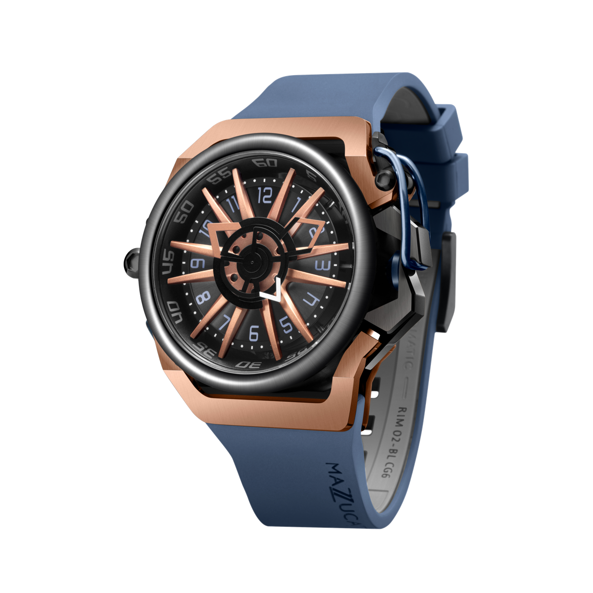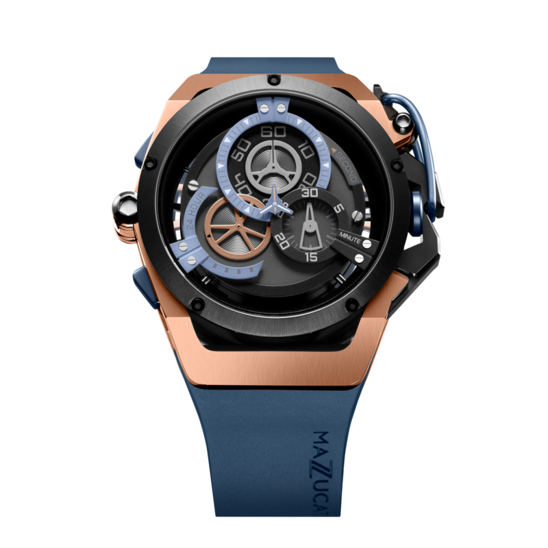 El sistema inverso permite que la caja se invierta completamente en ambas direcciones. Un pestillo de liberación rápida libera la corona de su protección al girar el protector de corona. Dos brazos especiales permiten que el estuche gire libremente y un clic claramente reconocible le indica cuándo el estuche está en la posición correcta para volver a bloquearse en su lugar. Una simple maniobra transforma el RIM Sport en un reloj cronógrafo elegante y deportivo.
