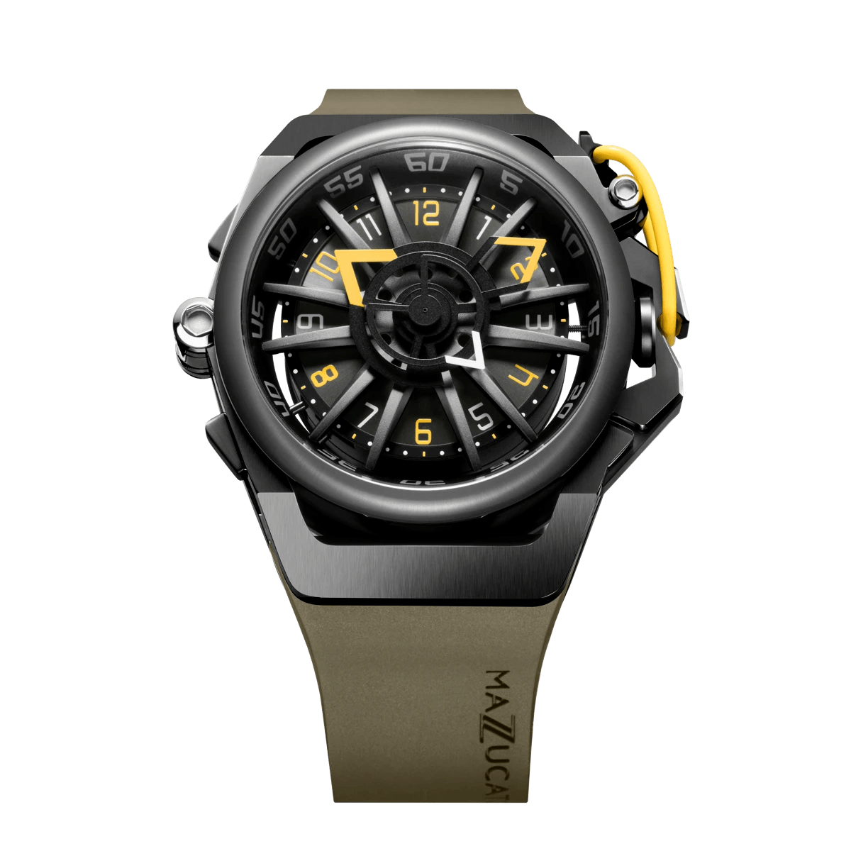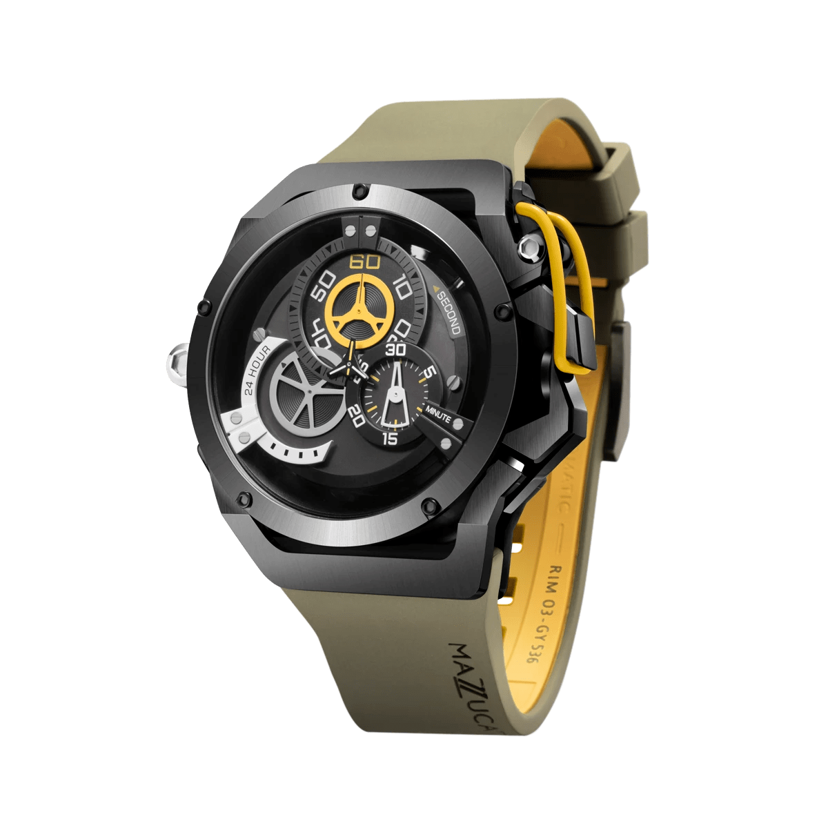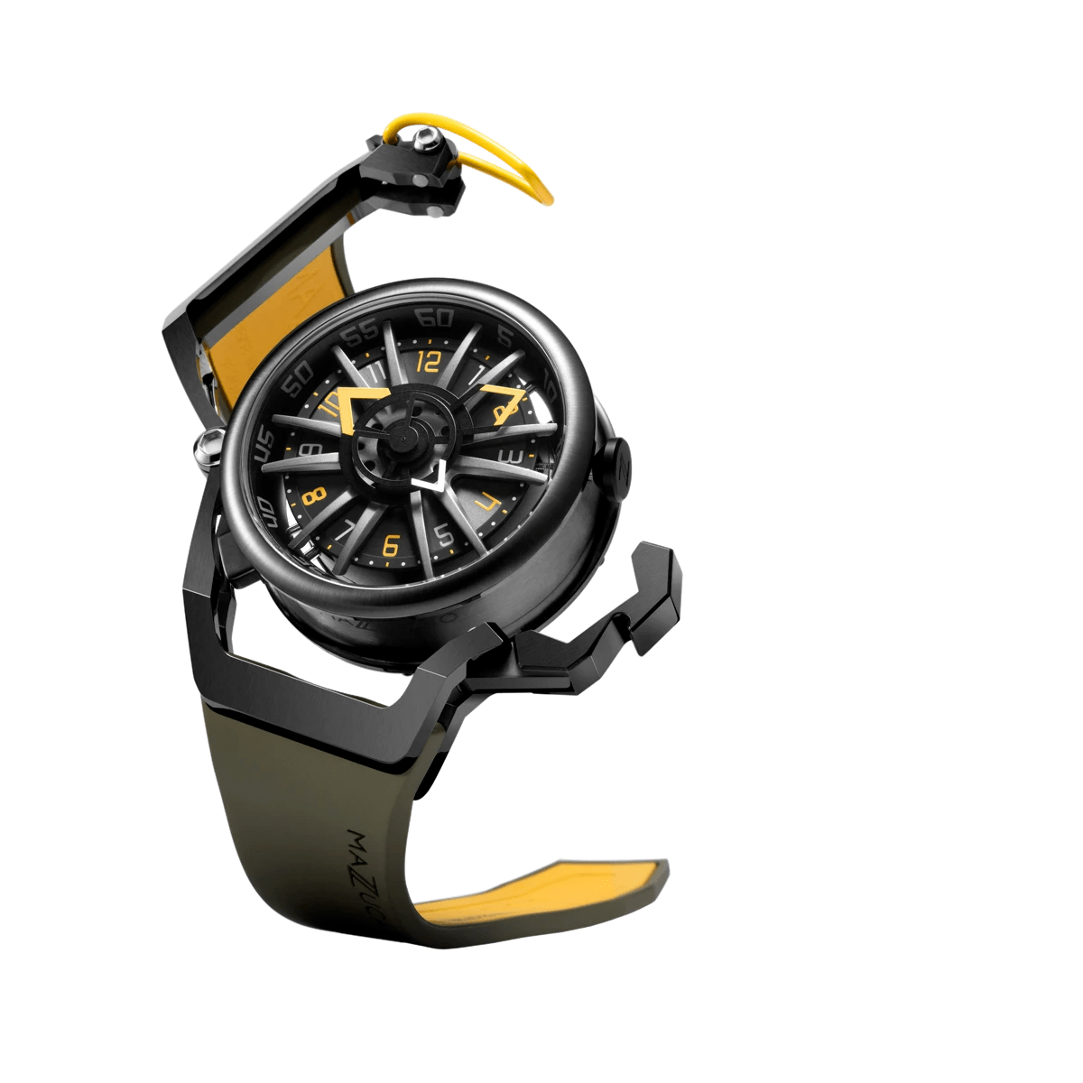 El sistema inverso permite que la caja se invierta completamente en ambas direcciones. Un pestillo de liberación rápida libera la corona de su protección al girar el protector de corona. Dos brazos especiales permiten que el estuche gire libremente y un clic claramente reconocible le indica cuándo el estuche está en la posición correcta para volver a bloquearse en su lugar. Una simple maniobra transforma el RIM Sport en un reloj cronógrafo elegante y deportivo.