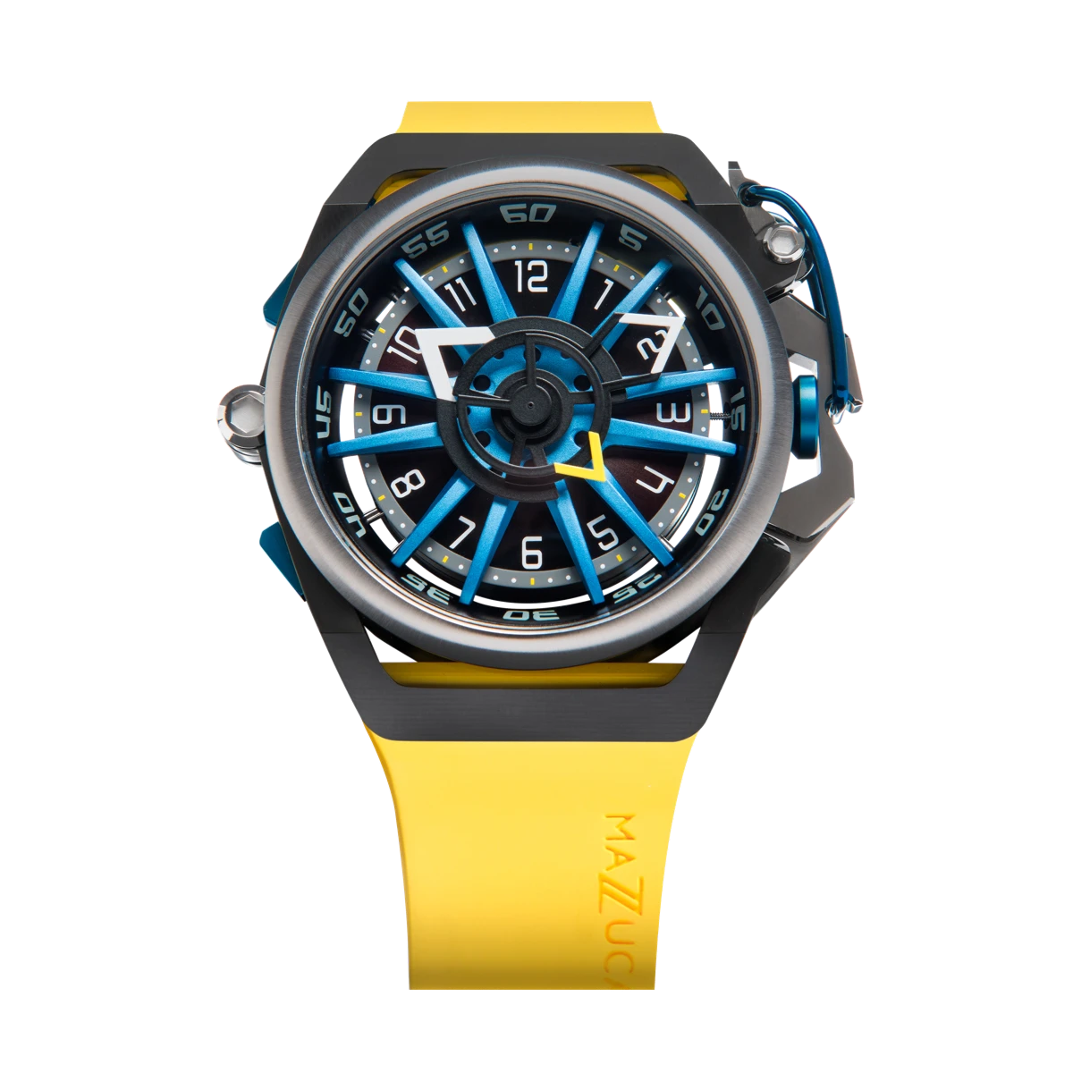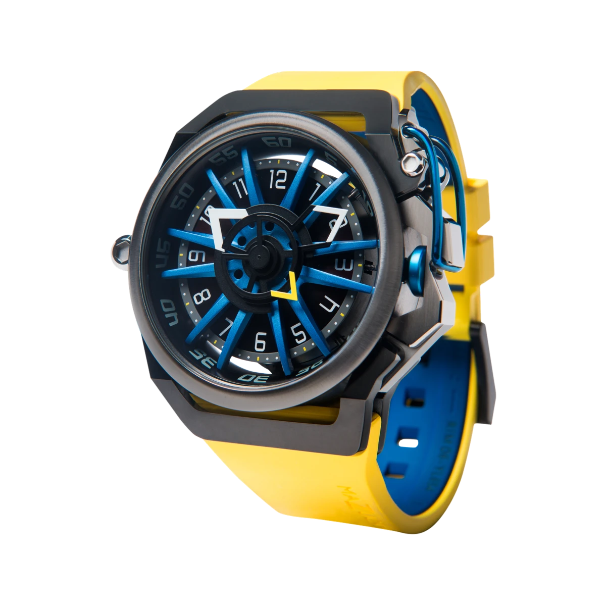 El sistema inverso permite que la caja se invierta completamente en ambas direcciones. Un pestillo de liberación rápida libera la corona de su protección al girar el protector de corona. Dos brazos especiales permiten que el estuche gire libremente y un clic claramente reconocible le indica cuándo el estuche está en la posición correcta para volver a bloquearse en su lugar. Una simple maniobra transforma el RIM Sport en un reloj cronógrafo elegante y deportivo.
