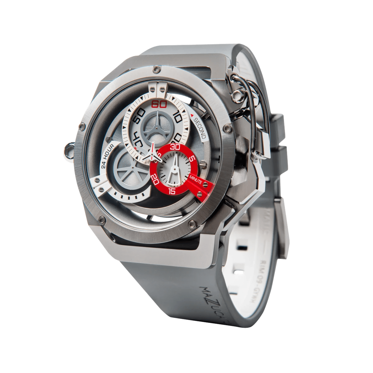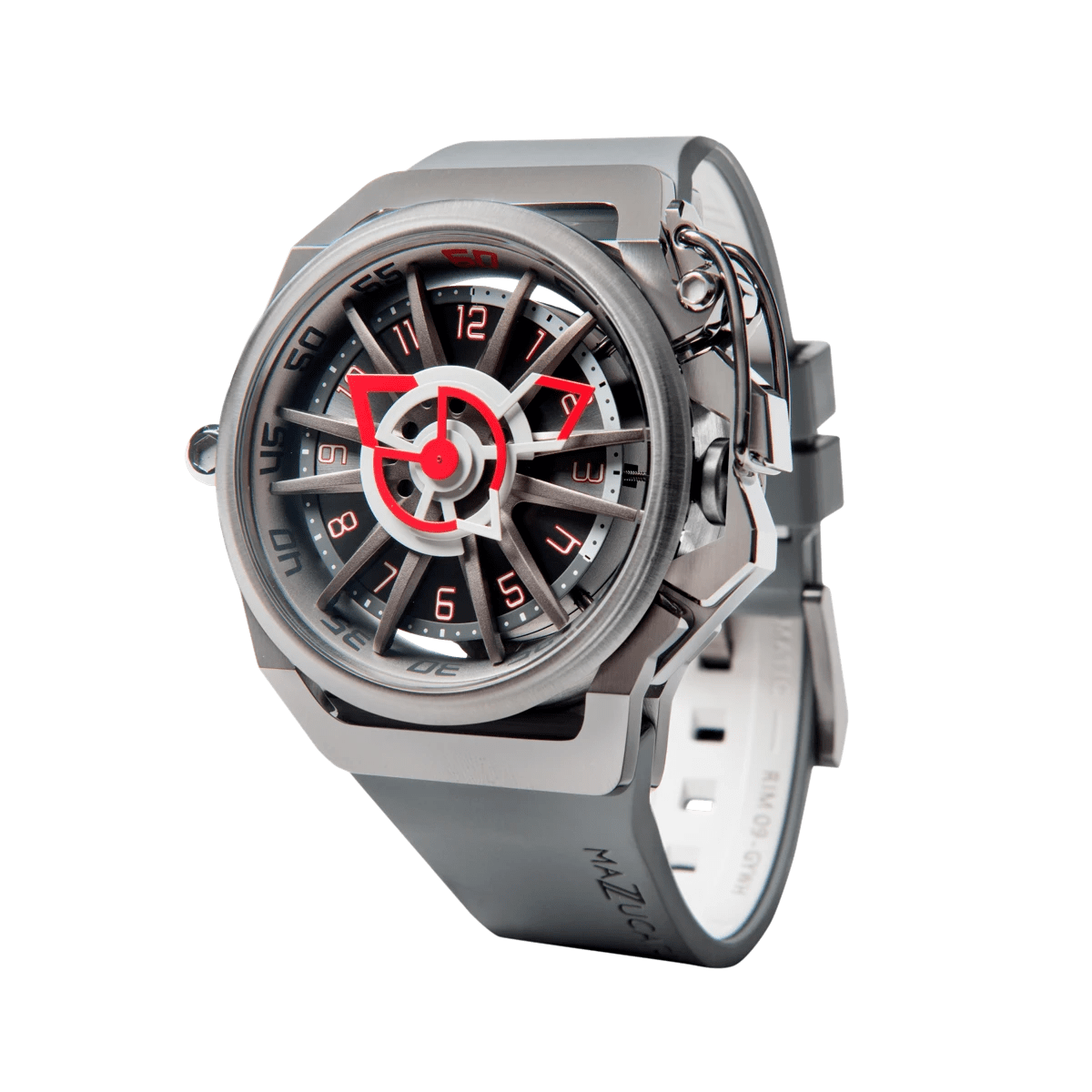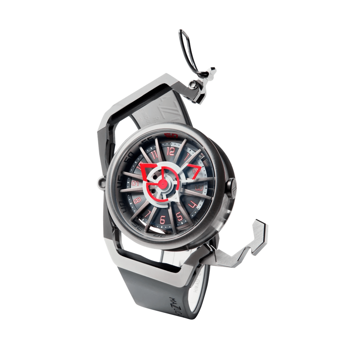 El sistema inverso permite que la caja se invierta completamente en ambas direcciones. Un pestillo de liberación rápida libera la corona de su protección al girar el protector de corona. Dos brazos especiales permiten que el estuche gire libremente y un clic claramente reconocible le indica cuándo el estuche está en la posición correcta para volver a bloquearse en su lugar. Una simple maniobra transforma el RIM Sport en un reloj cronógrafo elegante y deportivo.